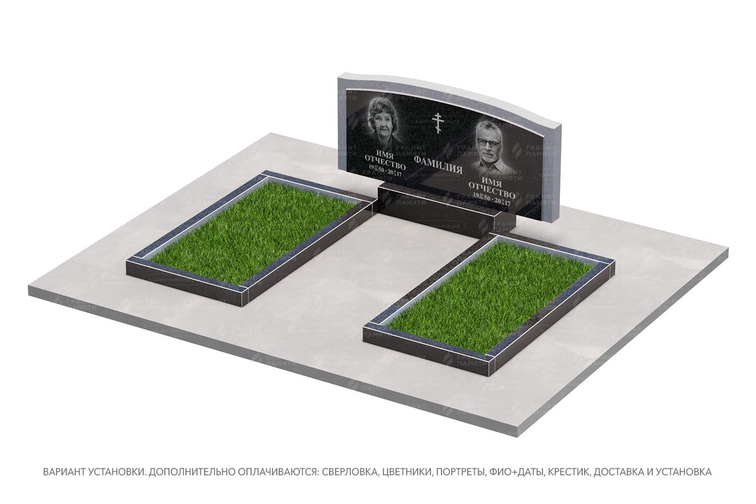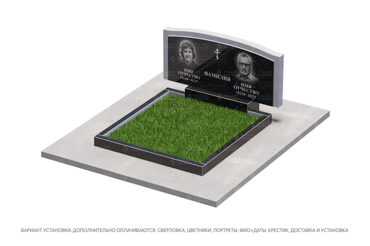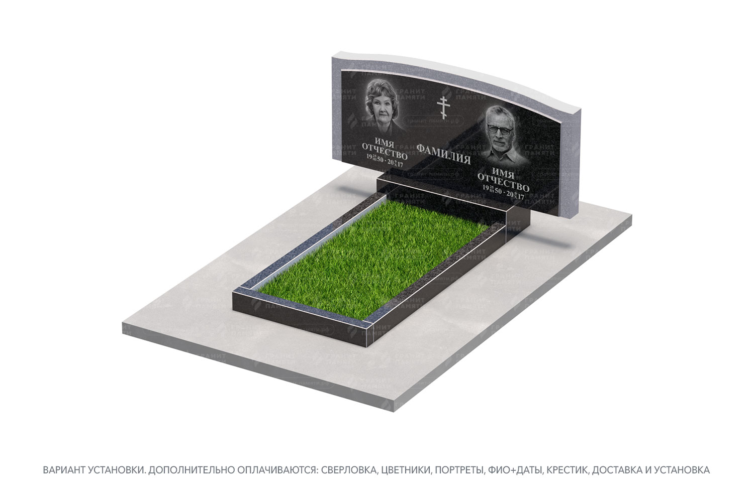 цветник, сверловка, портрет, ФИО+даты, крестик, доставка, установка.