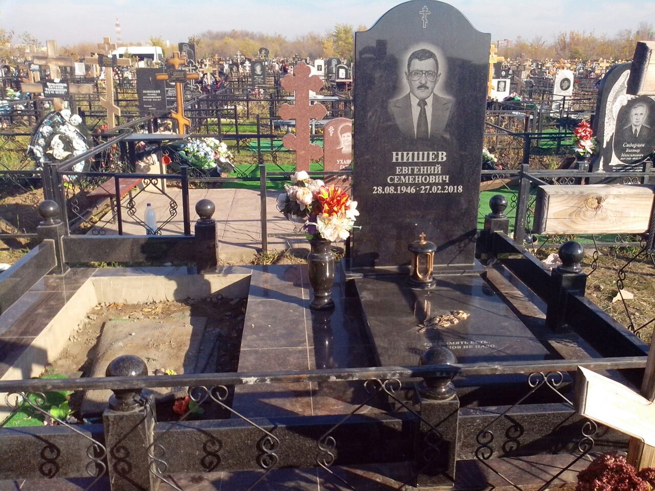 цветник, сверловка, портрет, ФИО+даты, крестик, доставка, установка.